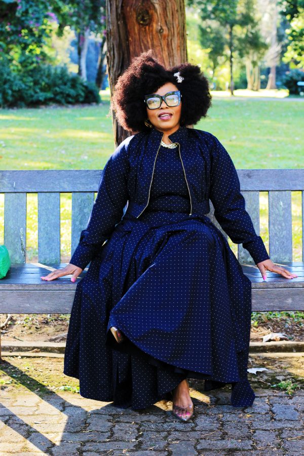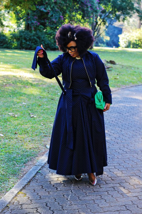 Navy set coming with a cropped zip up jacket and dress.